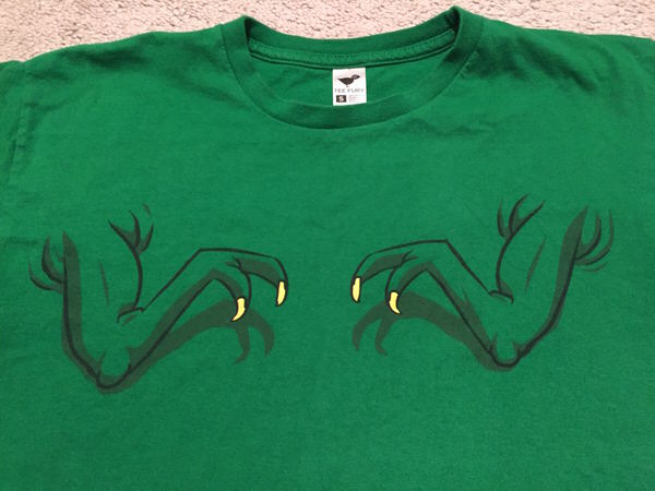 When I worked at the Apple Store a coworker and I had a thing about velociraptors. So, when this appeared on TeeFury it was fairly crucial that we both get it. I wish I had the picture of us wearing them together...!